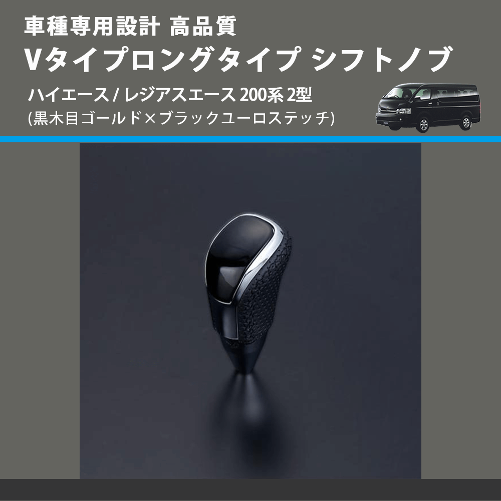 (黒木目ゴールド×ブラックユーロステッチ) Vタイプロングタイプ シフトノブ ハイエース / レジアスエース 200系 2型 FEGGARI STV152EBKL-003