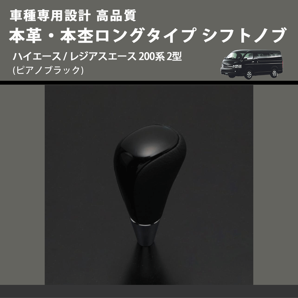 (ピアノブラック) 本革・本杢ロングタイプ シフトノブ ハイエース / レジアスエース 200系 2型 FEGGARI SDL004-007