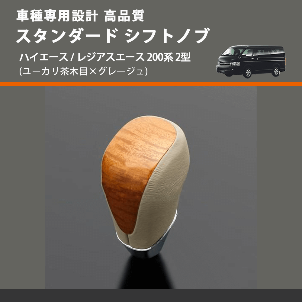 (ユーカリ茶木目×グレージュ) スタンダード シフトノブ ハイエース / レジアスエース 200系 2型 FEGGARI SLT13A-005