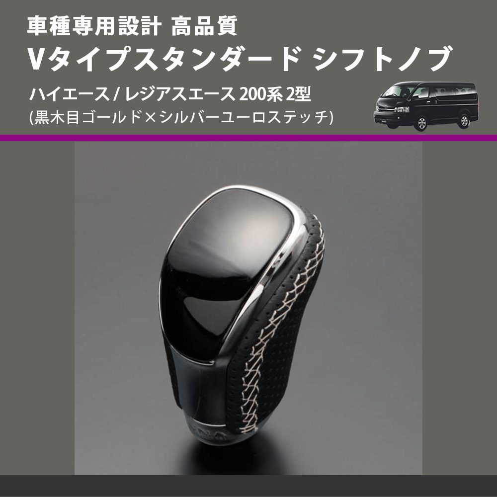 (黒木目ゴールド×シルバーユーロステッチ) Vタイプスタンダード シフトノブ ハイエース / レジアスエース 200系 2型 FEGGARI STV152ESI-004