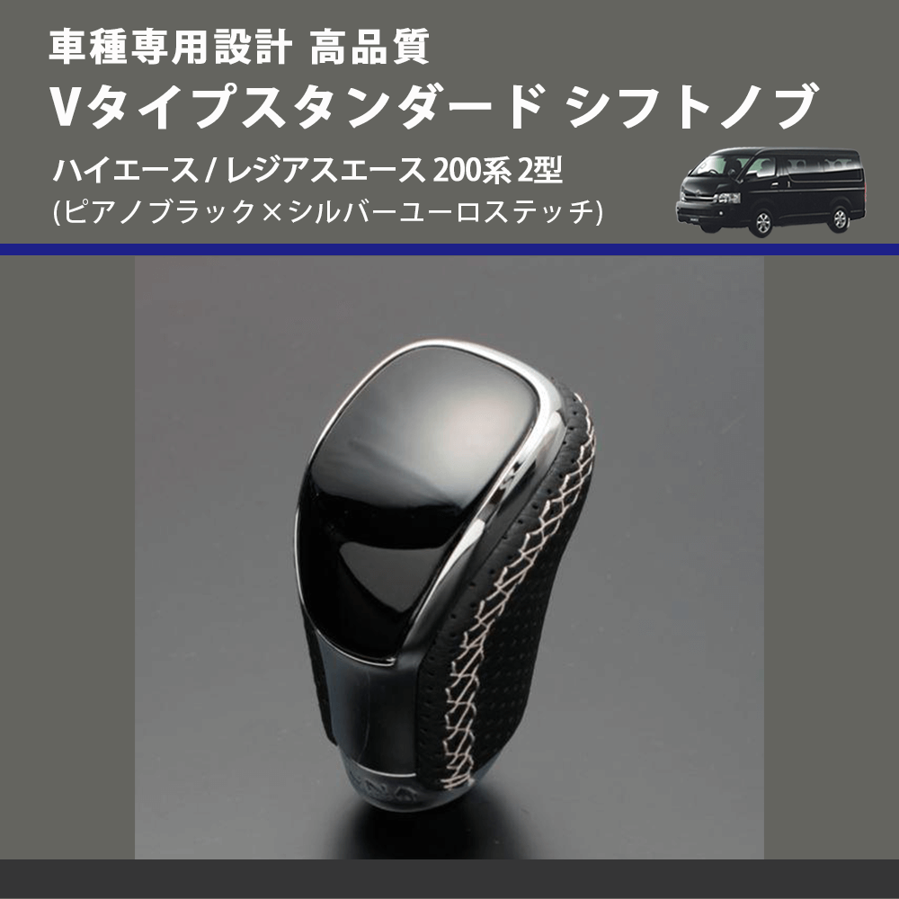(ピアノブラック×シルバーユーロステッチ) Vタイプスタンダード シフトノブ ハイエース / レジアスエース 200系 2型 FEGGARI STV126ESI-004