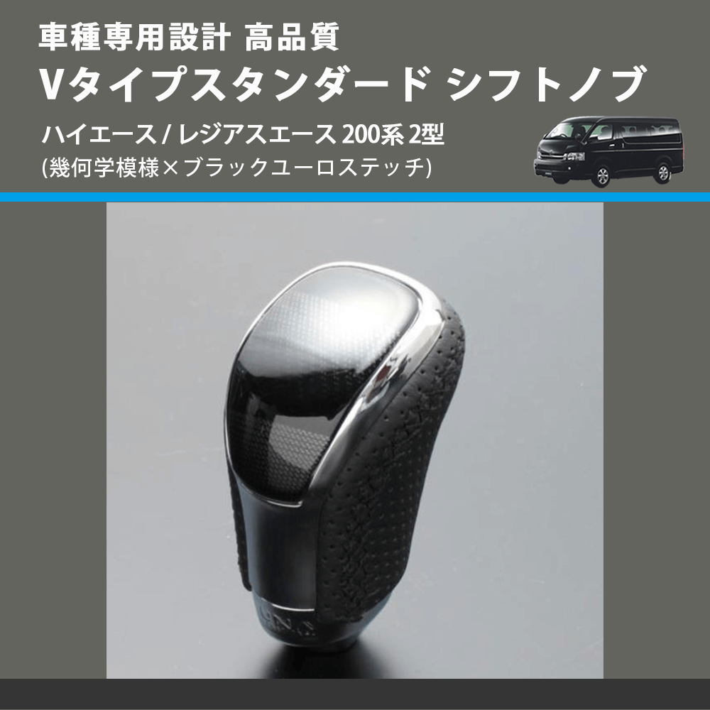 (幾何学模様×ブラックユーロステッチ) Vタイプスタンダード シフトノブ ハイエース / レジアスエース 200系 2型 FEGGARI STV245EBK-004