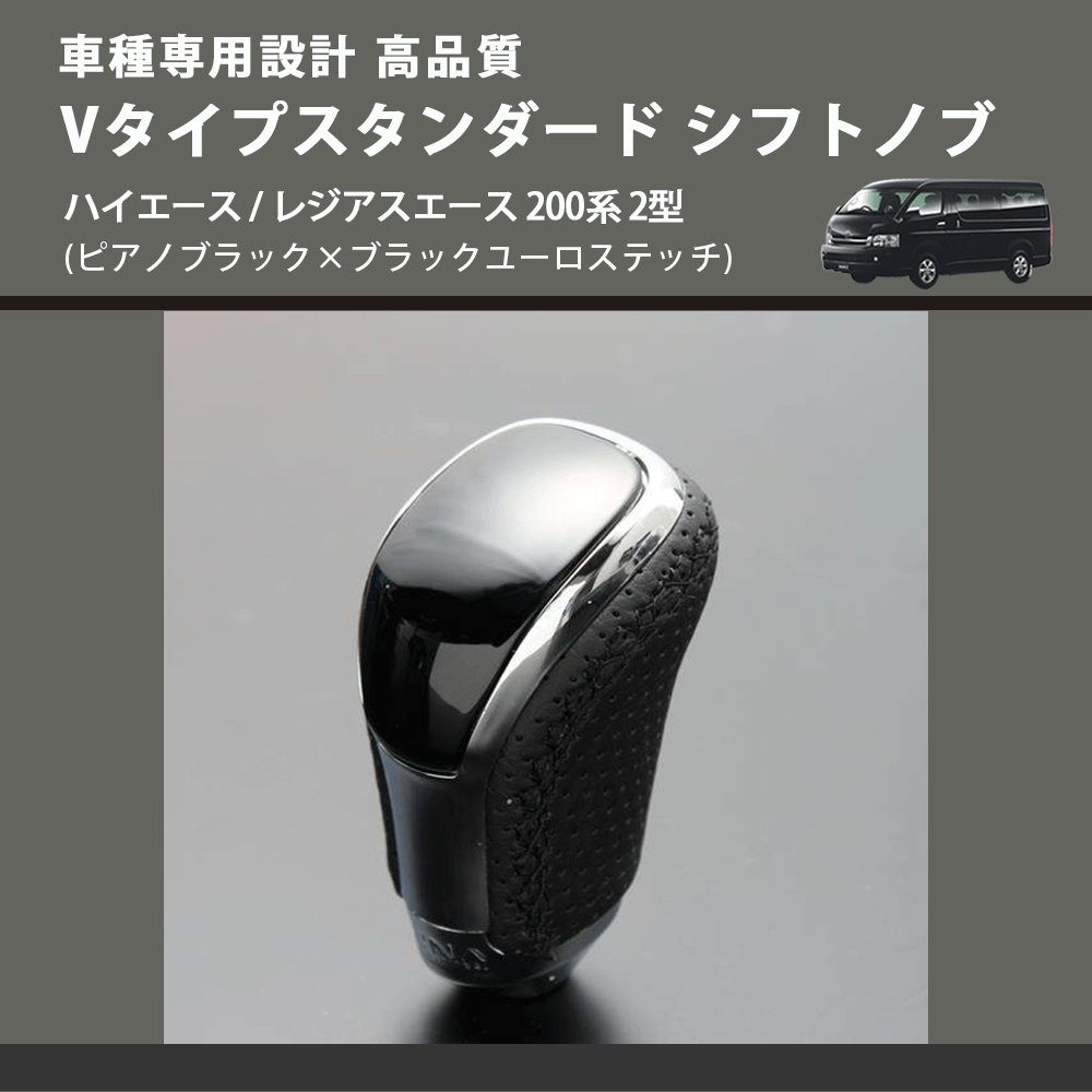 (ピアノブラック×ブラックユーロステッチ) Vタイプスタンダード シフトノブ ハイエース / レジアスエース 200系 2型 FEGGARI STV126EBK-004