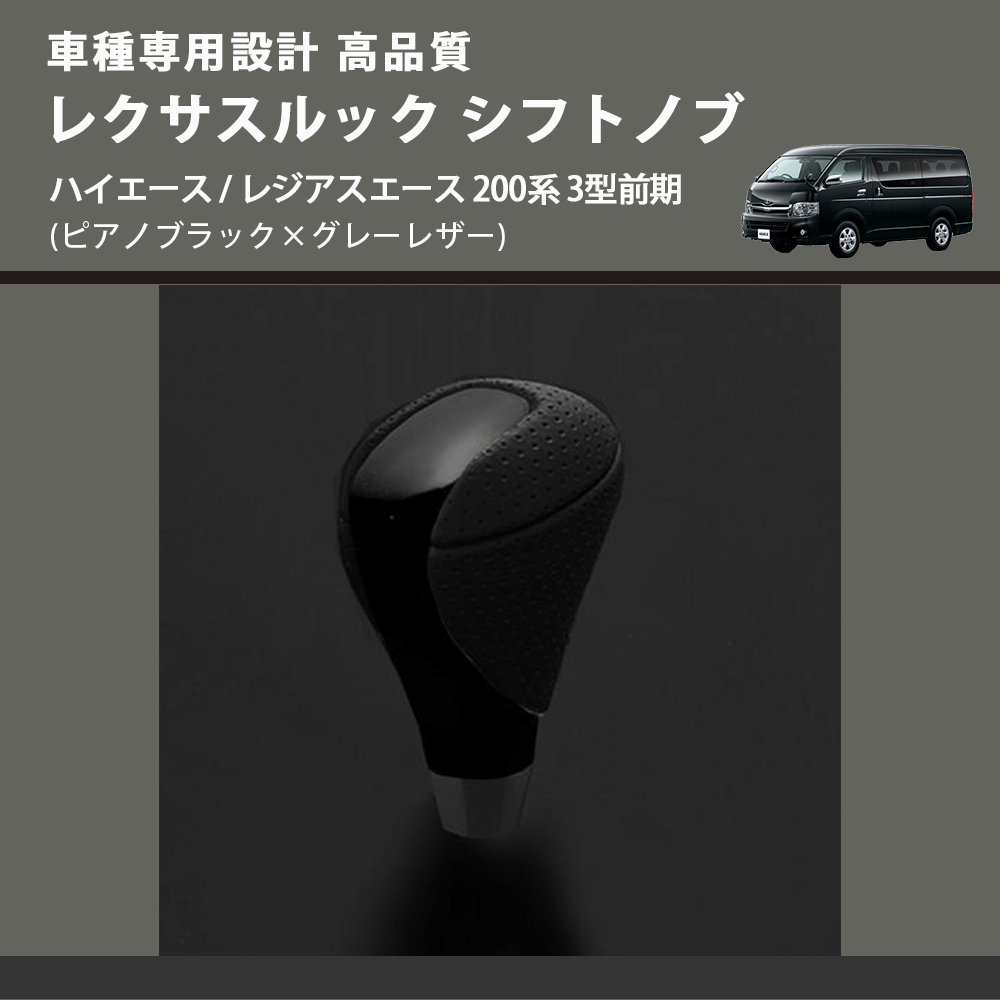(ピアノブラック×グレーレザー) レクサスルック シフトノブ ハイエース / レジアスエース 200系 3型前期 FEGGARI SLT-LX07-001