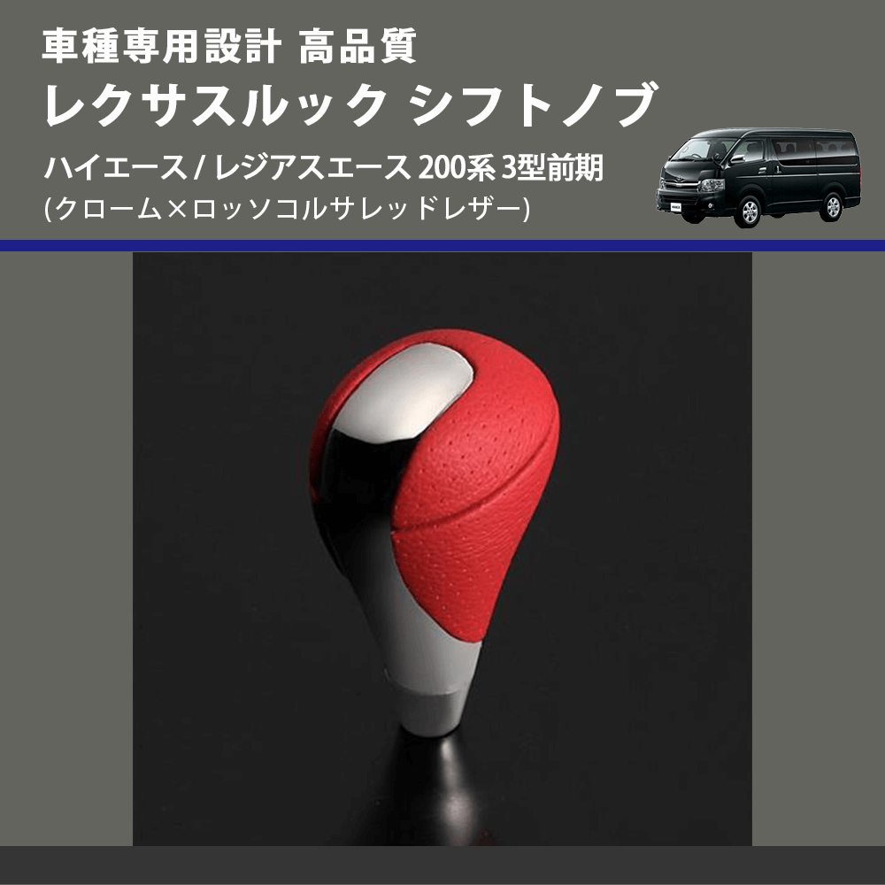 (クローム×ロッソコルサレッドレザー) レクサスルック シフトノブ ハイエース / レジアスエース 200系 3型前期 FEGGARI SLT-LX04-001