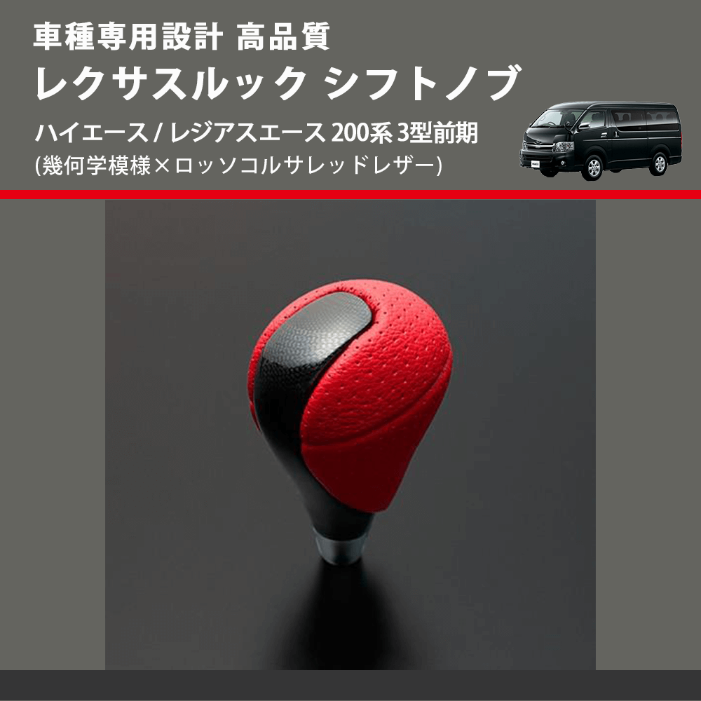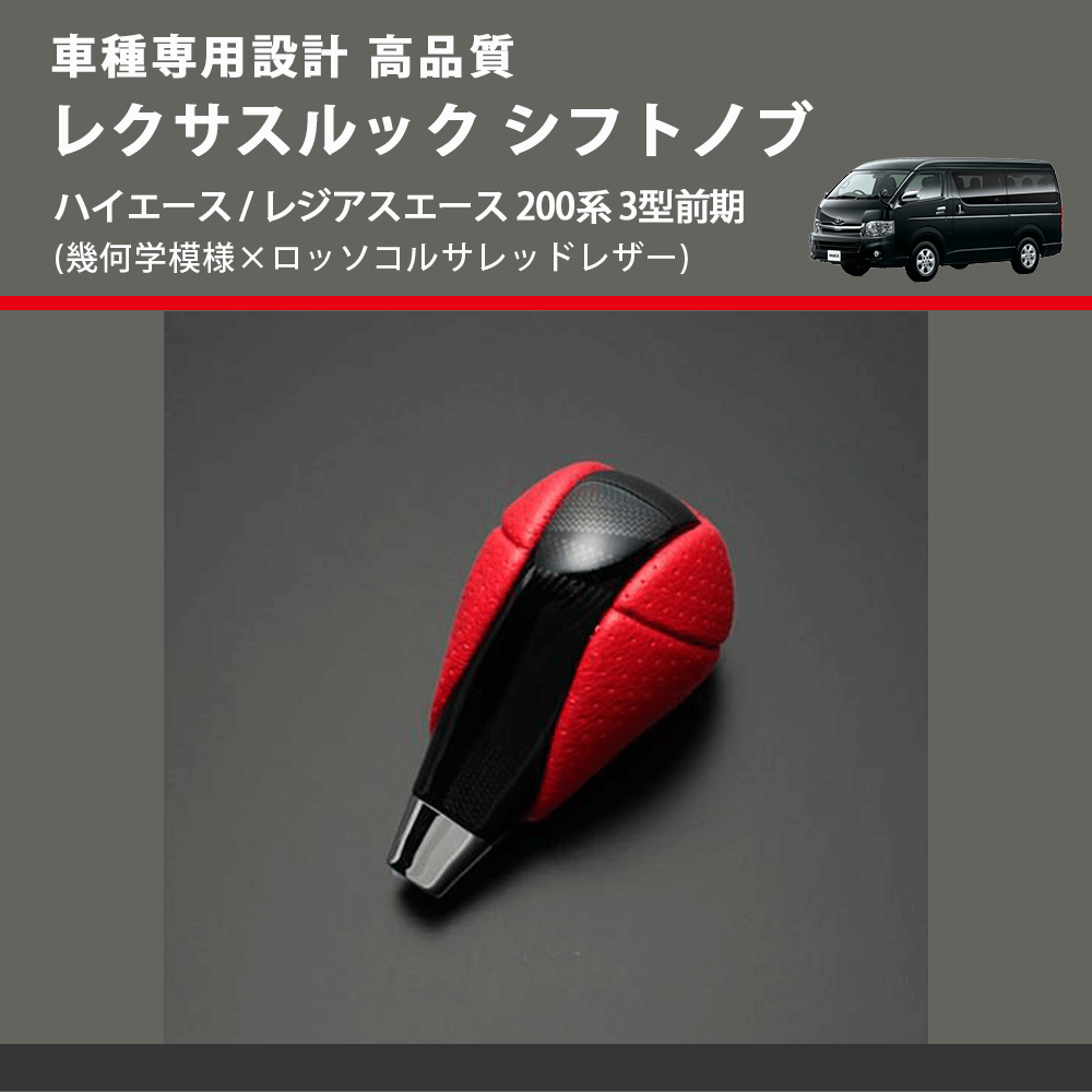 (幾何学模様×ロッソコルサレッドレザー) レクサスルック シフトノブ ハイエース / レジアスエース 200系 3型前期 FEGGARI SLT-LX03-001