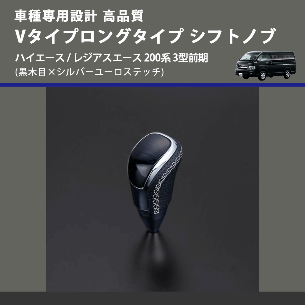 (黒木目×シルバーユーロステッチ) Vタイプロングタイプ シフトノブ ハイエース / レジアスエース 200系 3型前期 FEGGARI STV101ESIL-004