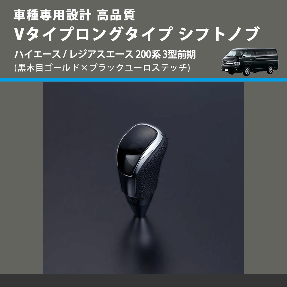 (黒木目ゴールド×ブラックユーロステッチ) Vタイプロングタイプ シフトノブ ハイエース / レジアスエース 200系 3型前期 FEGGARI STV152EBKL-004
