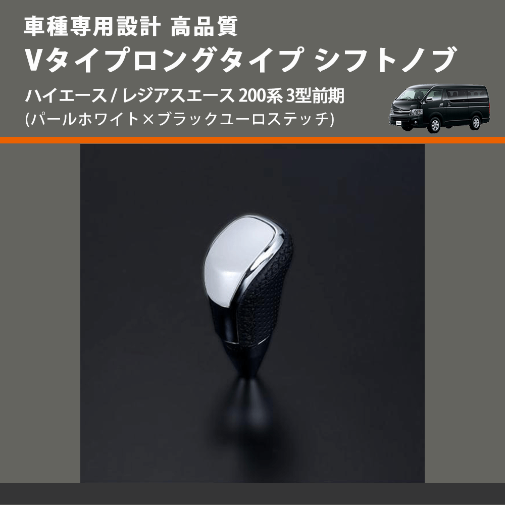 (パールホワイト×ブラックユーロステッチ) Vタイプロングタイプ シフトノブ ハイエース / レジアスエース 200系 3型前期 FEGGARI STV251EBKL-004