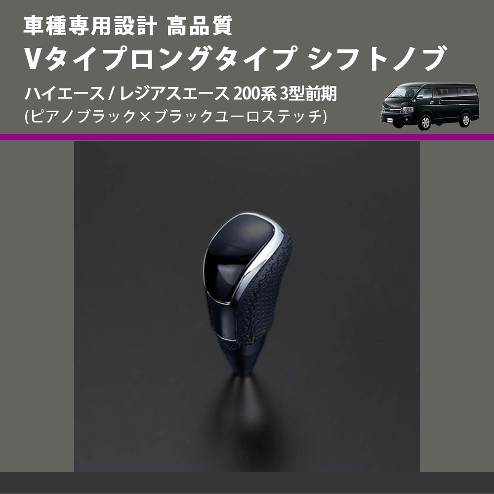 (ピアノブラック×ブラックユーロステッチ) Vタイプロングタイプ シフトノブ ハイエース / レジアスエース 200系 3型前期 FEGGARI STV126EBKL-004