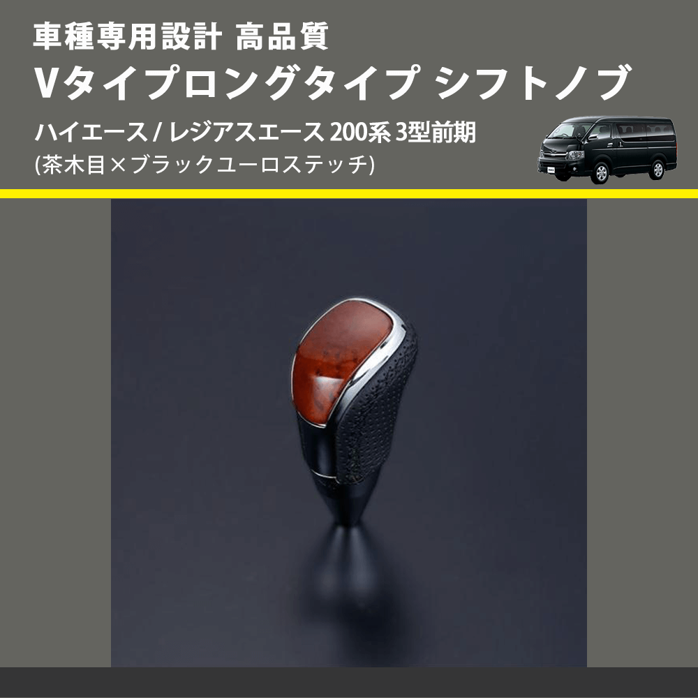 (茶木目×ブラックユーロステッチ) Vタイプロングタイプ シフトノブ ハイエース / レジアスエース 200系 3型前期 FEGGARI STV110EBKL-004