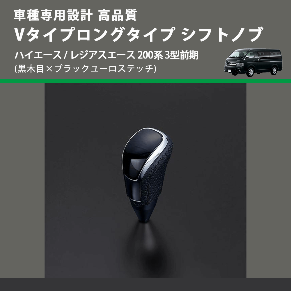 (黒木目×ブラックユーロステッチ) Vタイプロングタイプ シフトノブ ハイエース / レジアスエース 200系 3型前期 FEGGARI STV101EBKL-004