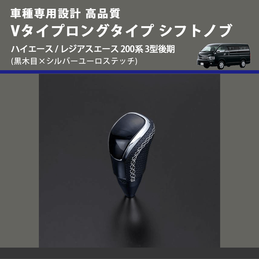 (黒木目×シルバーユーロステッチ) Vタイプロングタイプ シフトノブ ハイエース / レジアスエース 200系 3型後期 FEGGARI STV101ESIL-005