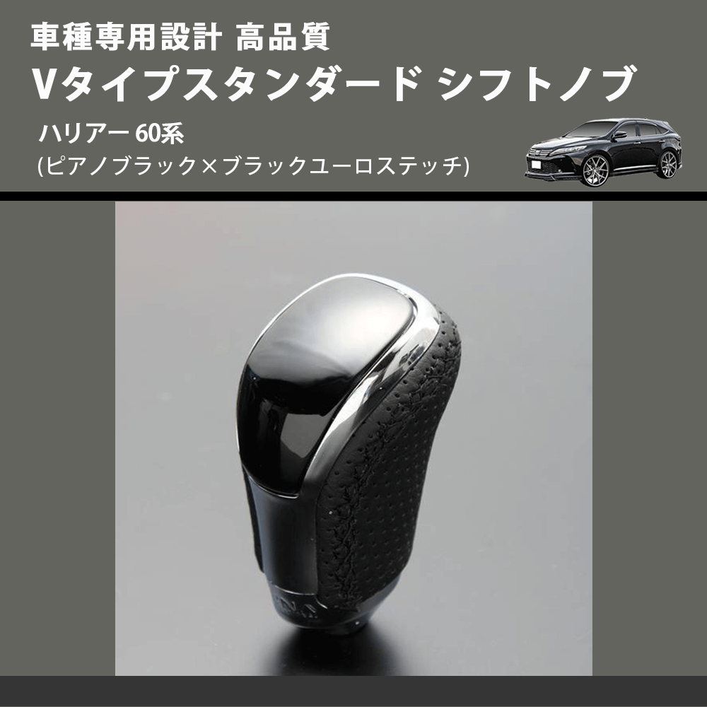 (ピアノブラック×ブラックユーロステッチ) Vタイプスタンダード シフトノブ ハリアー 60系 FEGGARI STV126EBK-032