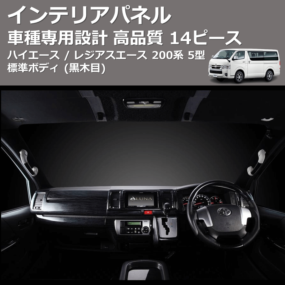 (黒木目) 14ピース インテリアパネル ハイエース / レジアスエース 200系 5型 標準ボディ FEGGARI PDL003-002