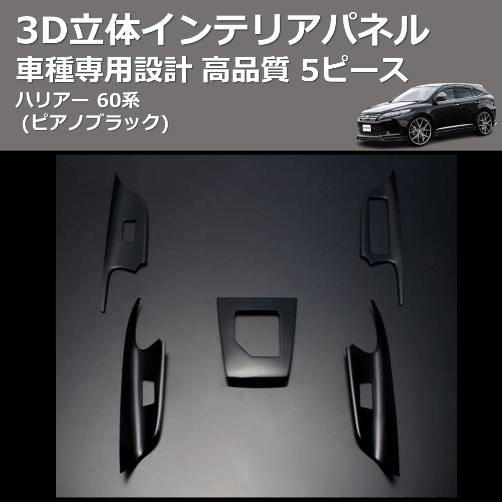 (ピアノブラック) 5ピース 3D立体インテリアパネル ハリアー 60系 FEGGARI HA60PB-001