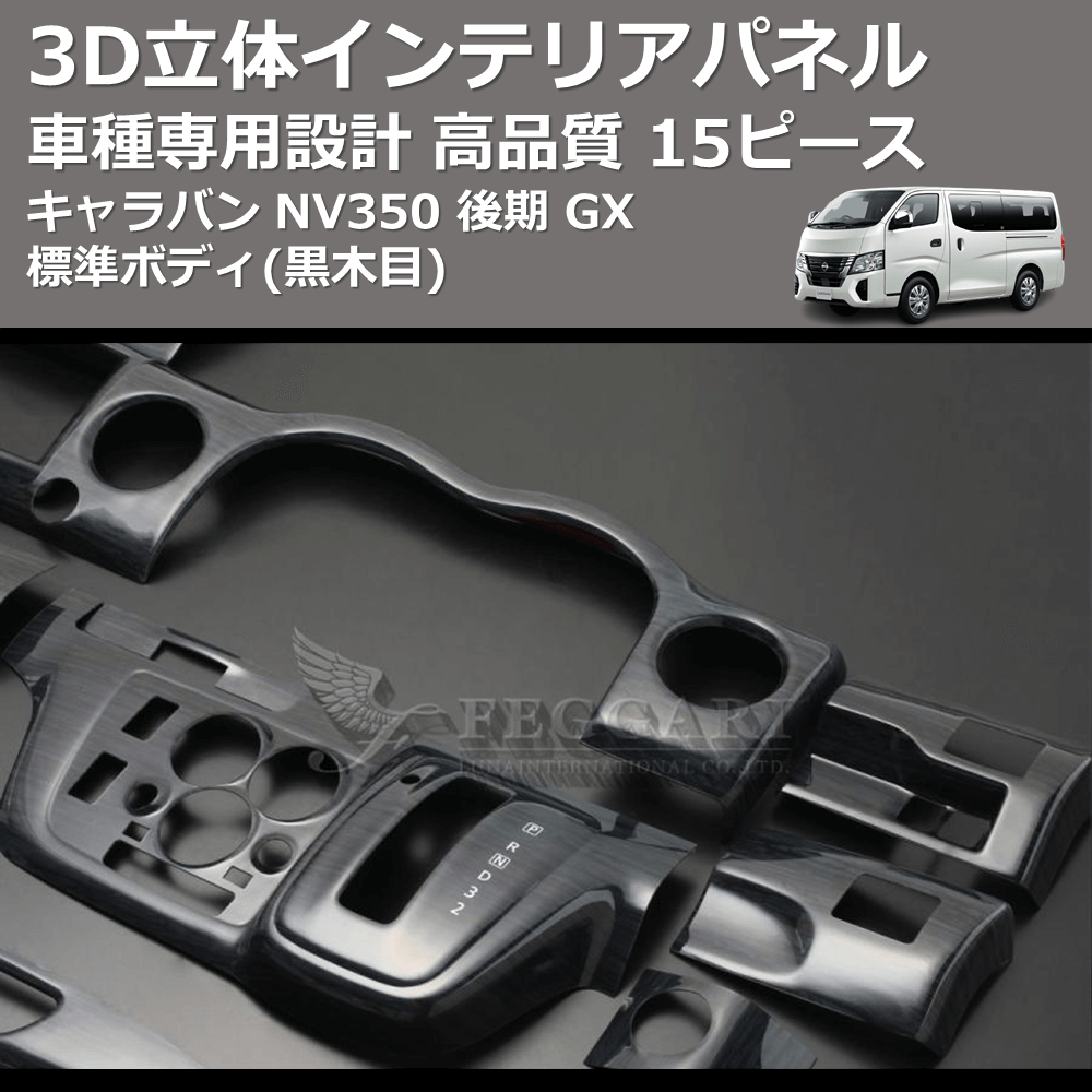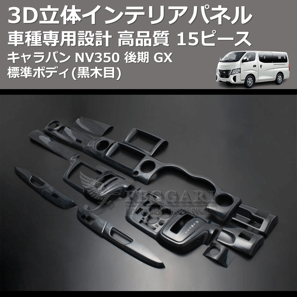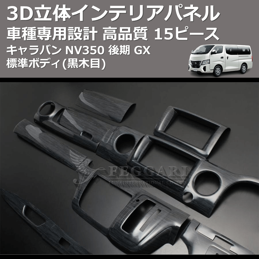 (黒木目) 15ピース 3D立体インテリアパネル キャラバン NV350 後期 GX 標準ボディ FEGGARI PLNV350BG-003