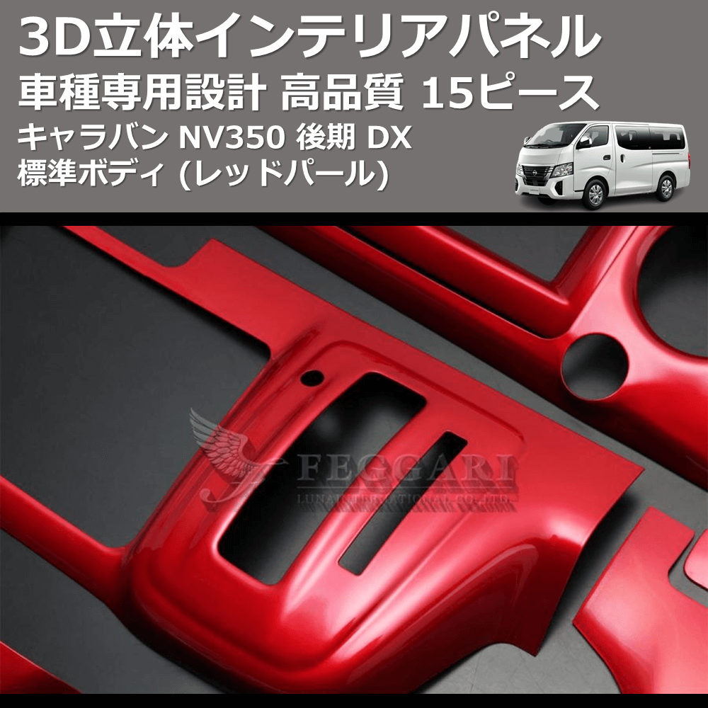 (レッドパール) 15ピース 3D立体インテリアパネル キャラバン NV350 後期 DX 標準ボディ FEGGARI PLNV350RED-004