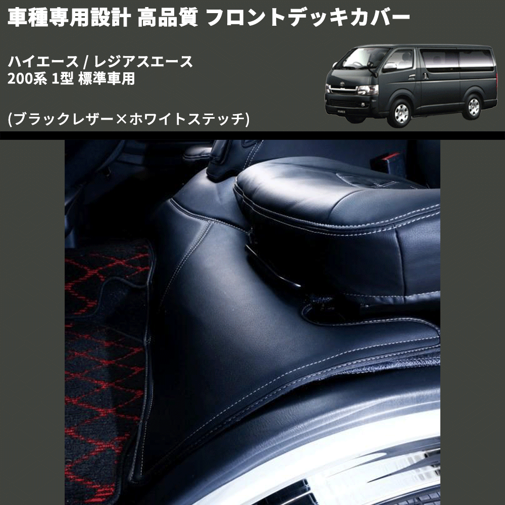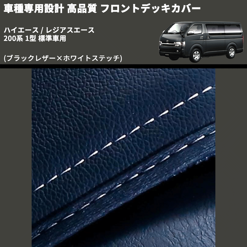 (ブラックレザー×ホワイトステッチ) フロントデッキカバー ハイエース / レジアスエース 200系 1型 標準車用 FEGGARI HFC01W-001