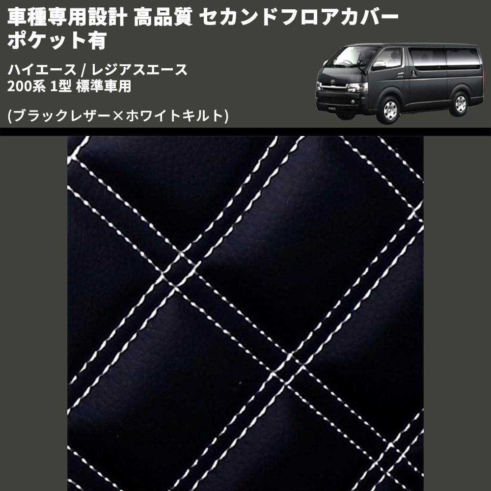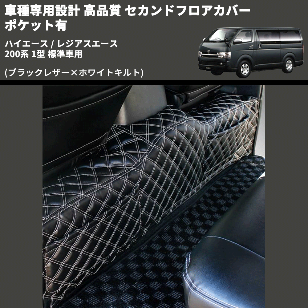 (ブラックレザー×ホワイトキルト) セカンドフロアカバー ポケット有 ハイエース / レジアスエース 200系 1型 標準車用 FEGGARI LH071K-001