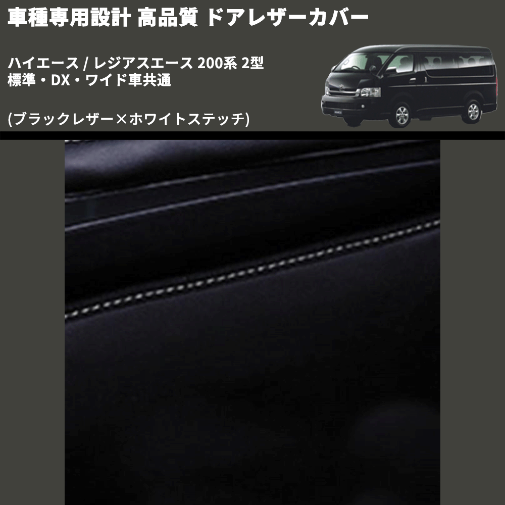 (ブラックレザー×ホワイトステッチ) アッパー用ドアレザーカバー2P ハイエース / レジアスエース 200系 2型 標準・DX・ワイド車共通 FEGGARI DL200-1BKWH