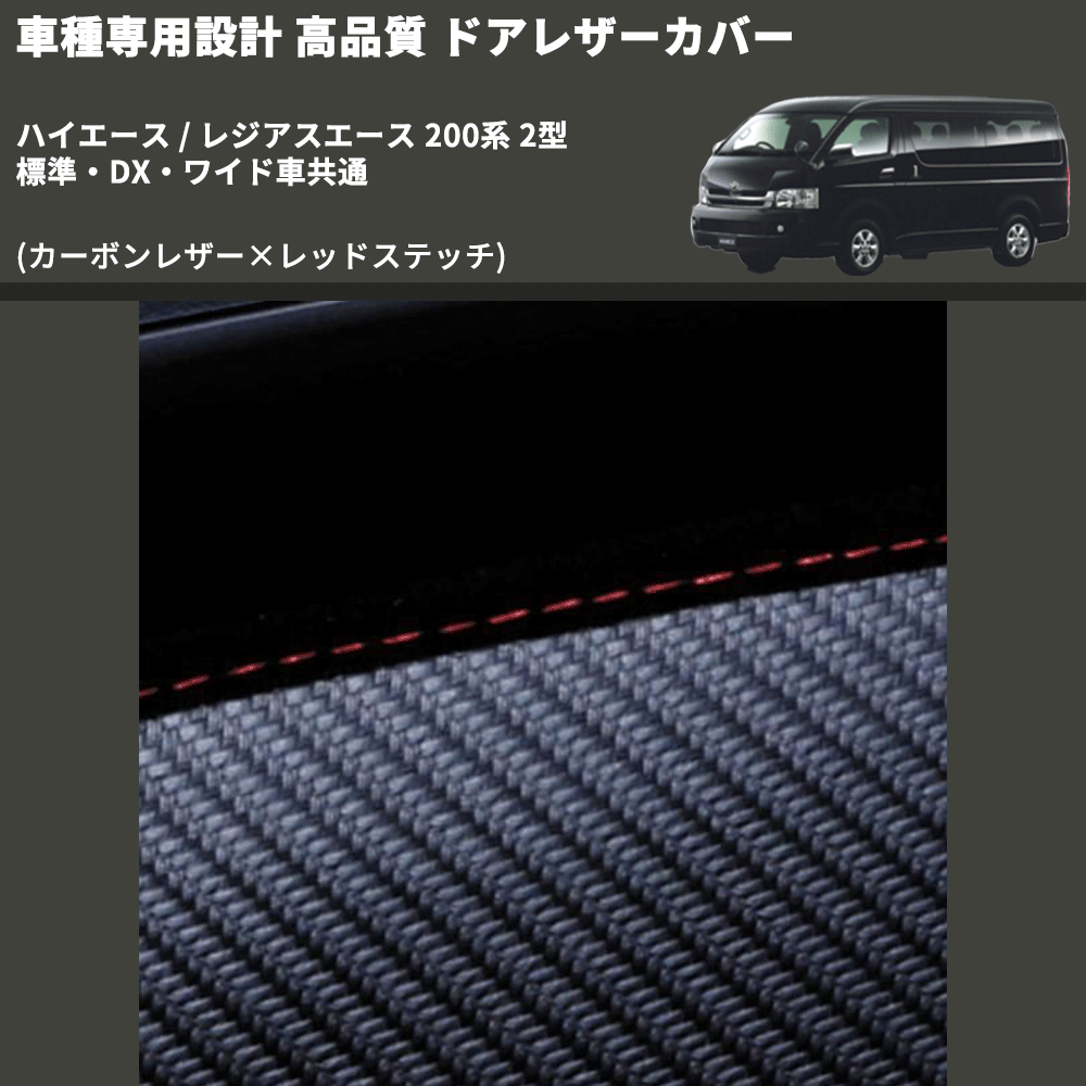 (カーボンレザー×レッドステッチ) アッパー用ドアレザーカバー2P ハイエース / レジアスエース 200系 2型 標準・DX・ワイド車共通 FEGGARI DL200-1CR
