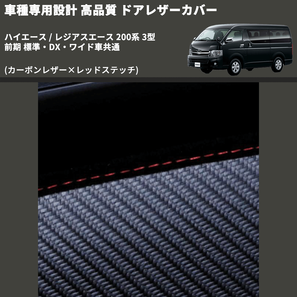 (カーボンレザー×レッドステッチ) アッパー用ドアレザーカバー2P ハイエース / レジアスエース 200系 3型 前期 標準・DX・ワイド車共通 FEGGARI DL200-1CR