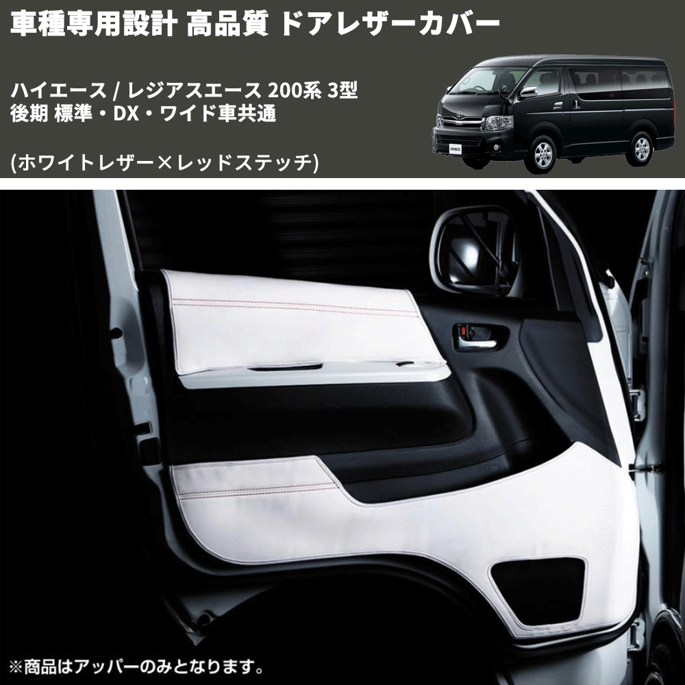 (ホワイトレザー×レッドステッチ) アッパー用ドアレザーカバー2P ハイエース / レジアスエース 200系 3型 後期 標準・DX・ワイド車共通 FEGGARI DL200-1WHR