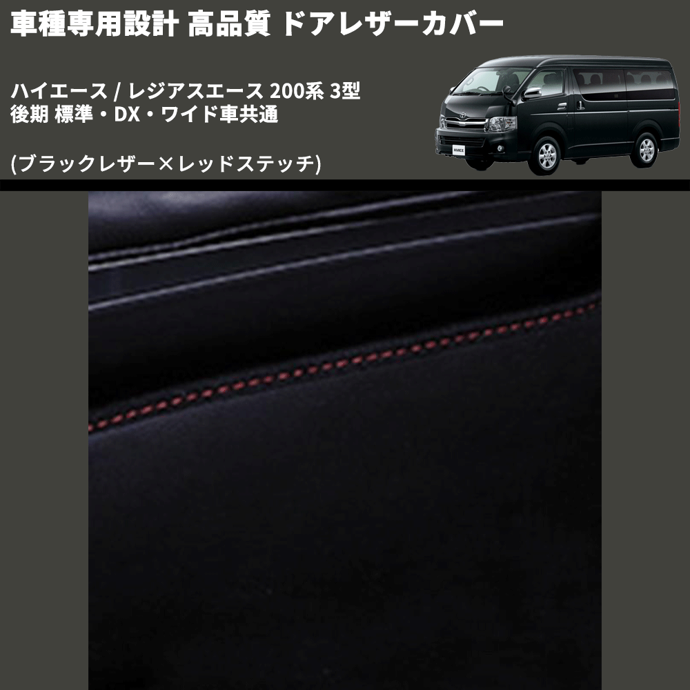 (ブラックレザー×レッドステッチ) ロア用ドアレザーカバー2P ハイエース / レジアスエース 200系 3型 後期 標準・DX・ワイド車共通 FEGGARI DL200-2BKR