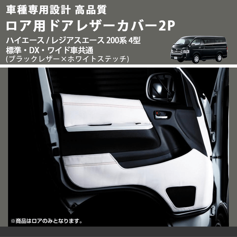 (ブラックレザー×ホワイトステッチ) ロア用ドアレザーカバー2P ハイエース / レジアスエース 200系 4型 標準・DX・ワイド車共通 FEGGARI DL200-2BKWH