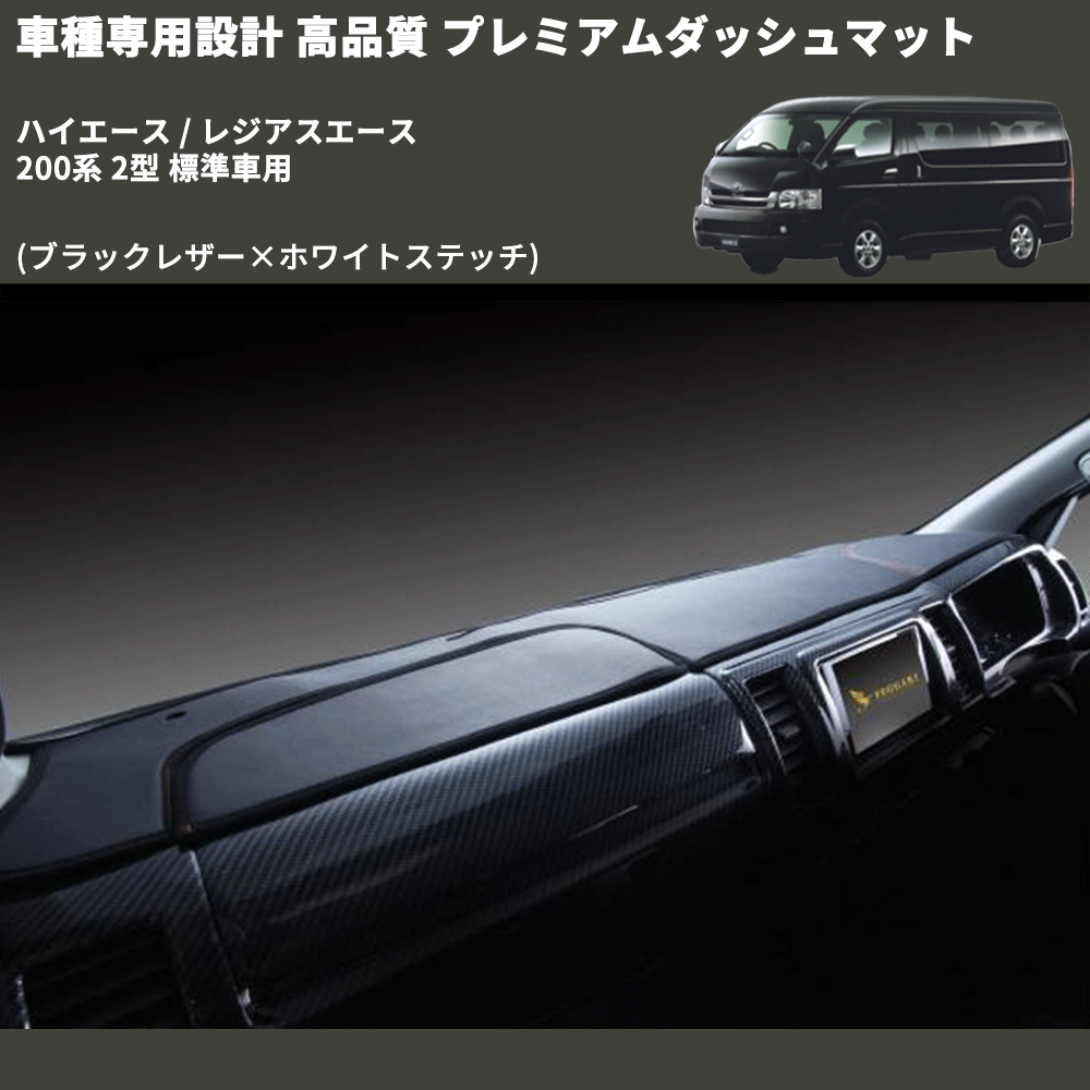 (ブラックレザー×ホワイトステッチ) プレミアムダッシュマット ハイエース / レジアスエース 200系 2型 標準車用 FEGGARI DM200BKWH