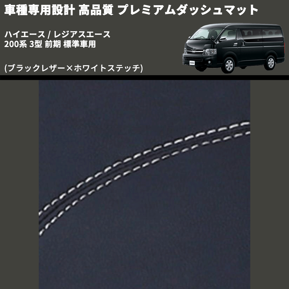 (ブラックレザー×ホワイトステッチ) プレミアムダッシュマット ハイエース / レジアスエース 200系 3型 前期 標準車用 FEGGARI DM200BKWH