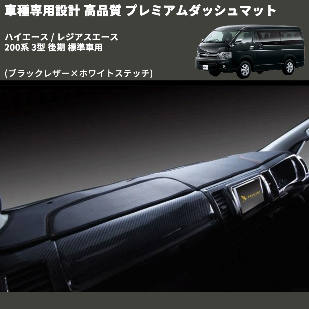 (ブラックレザー×ホワイトステッチ) プレミアムダッシュマット ハイエース / レジアスエース 200系 3型 後期 標準車用 FEGGARI DM200BKWH