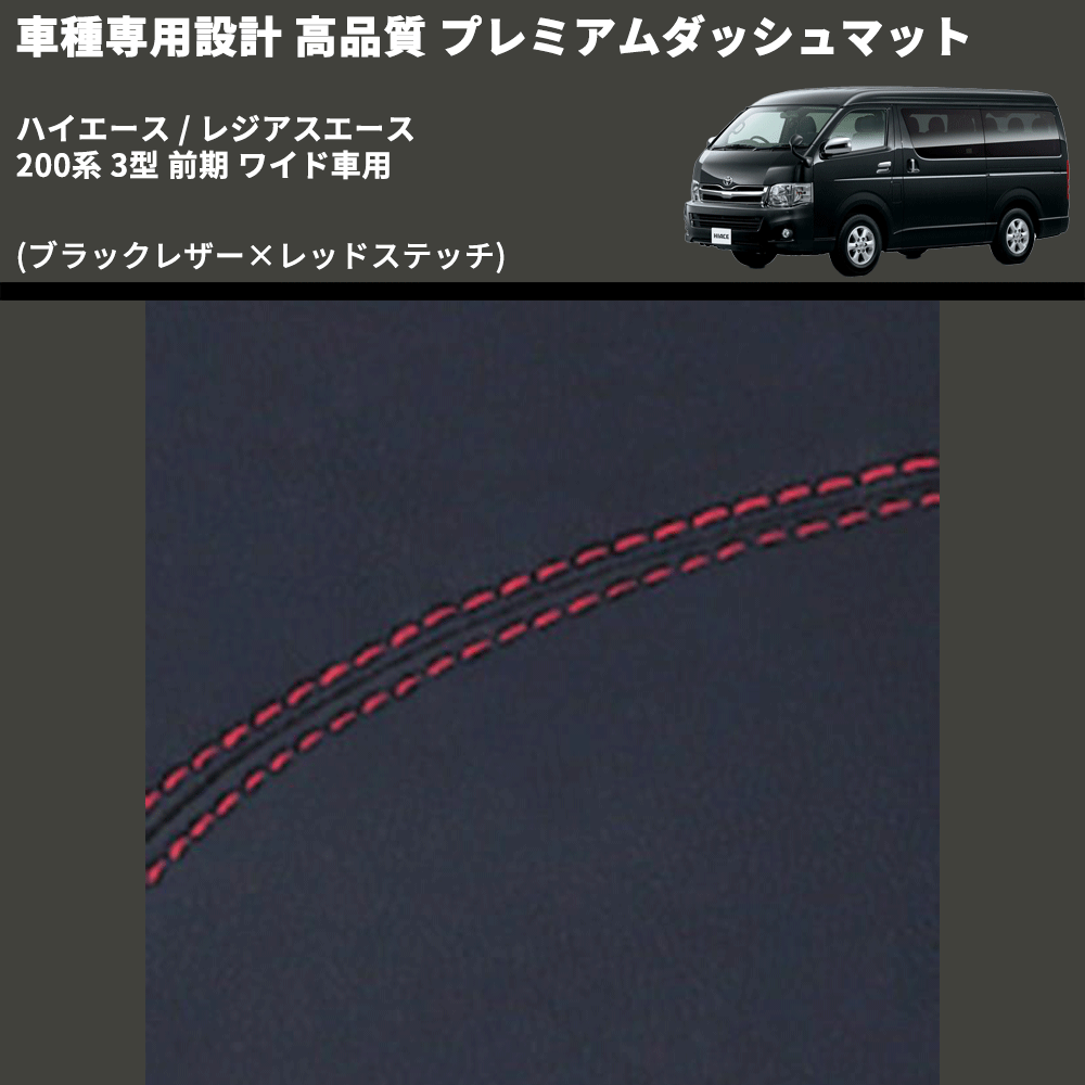 (ブラックレザー×レッドステッチ) プレミアムダッシュマット ハイエース / レジアスエース 200系 3型 前期 ワイド車用 FEGGARI DM200BKRW
