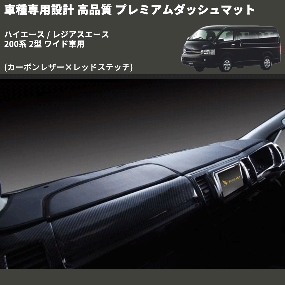 (カーボンレザー×レッドステッチ) プレミアムダッシュマット ハイエース / レジアスエース 200系 2型 ワイド車用 FEGGARI DM200CARW