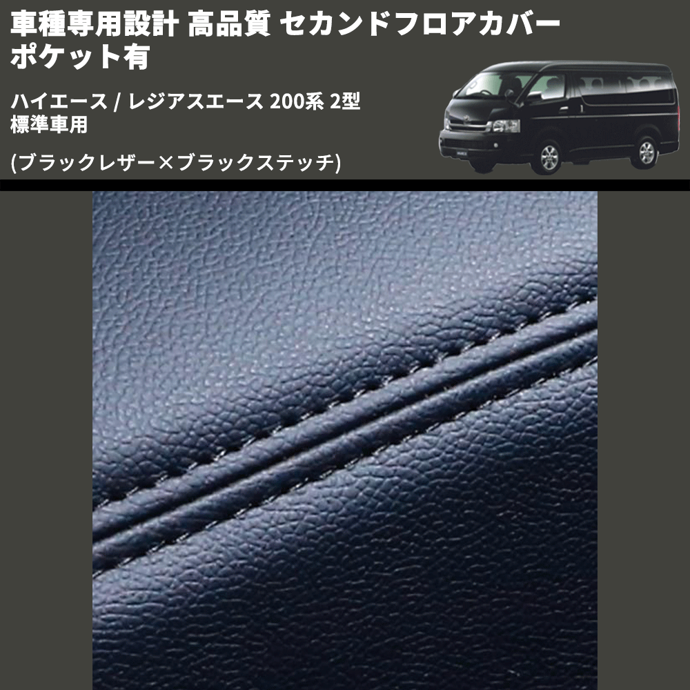 (ブラックレザー×ブラックステッチ) セカンドフロアカバー ポケット有 ハイエース / レジアスエース 200系 2型 標準車用 FEGGARI LH071B-002