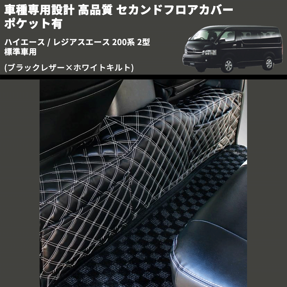 (ブラックレザー×ホワイトキルト) セカンドフロアカバー ポケット有 ハイエース / レジアスエース 200系 2型 標準車用 FEGGARI LH071K-002