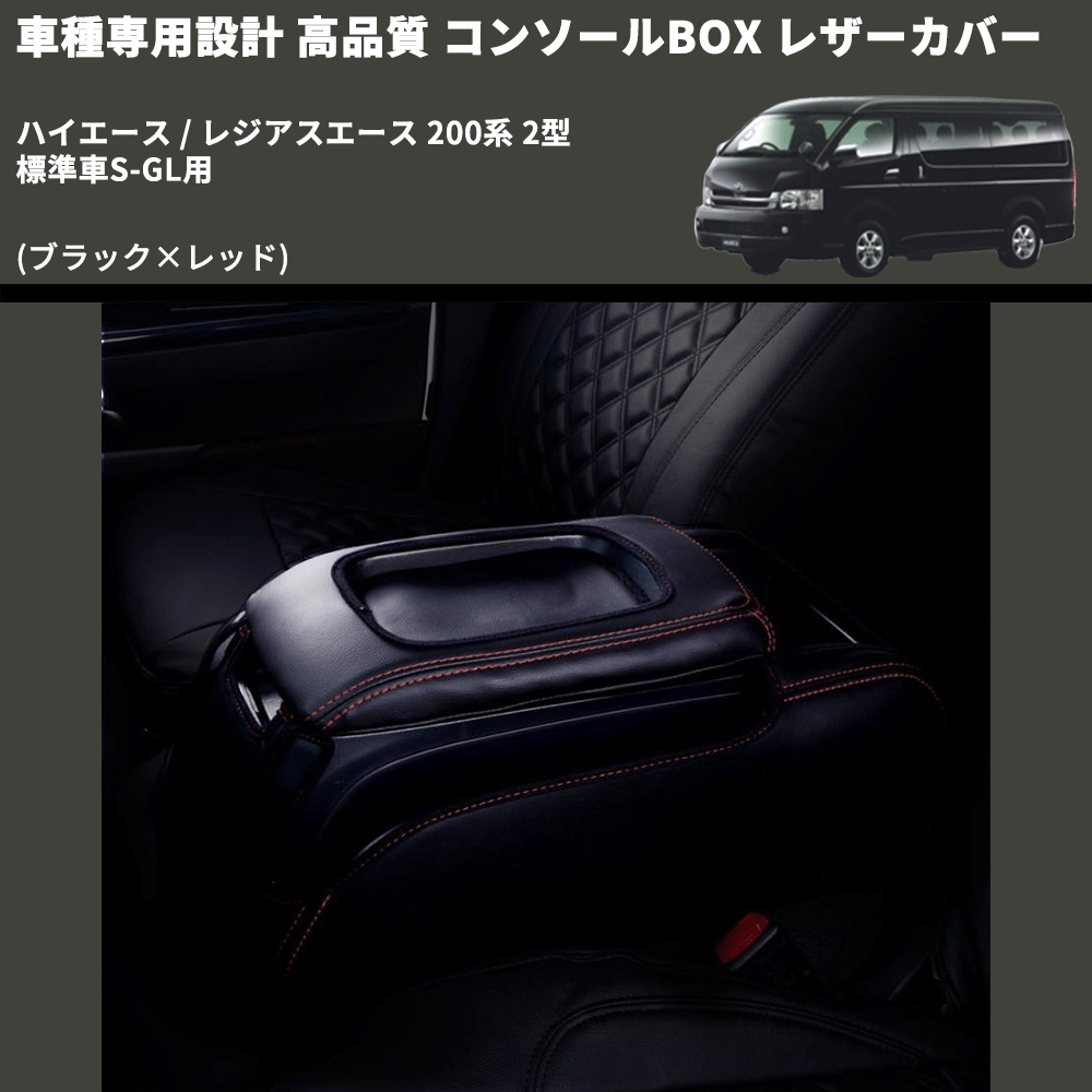 (ブラック×レッド) コンソールBOX レザーカバー ハイエース / レジアスエース 200系 2型 標準車S-GL用 FEGGARI CLCN-B-RS-002