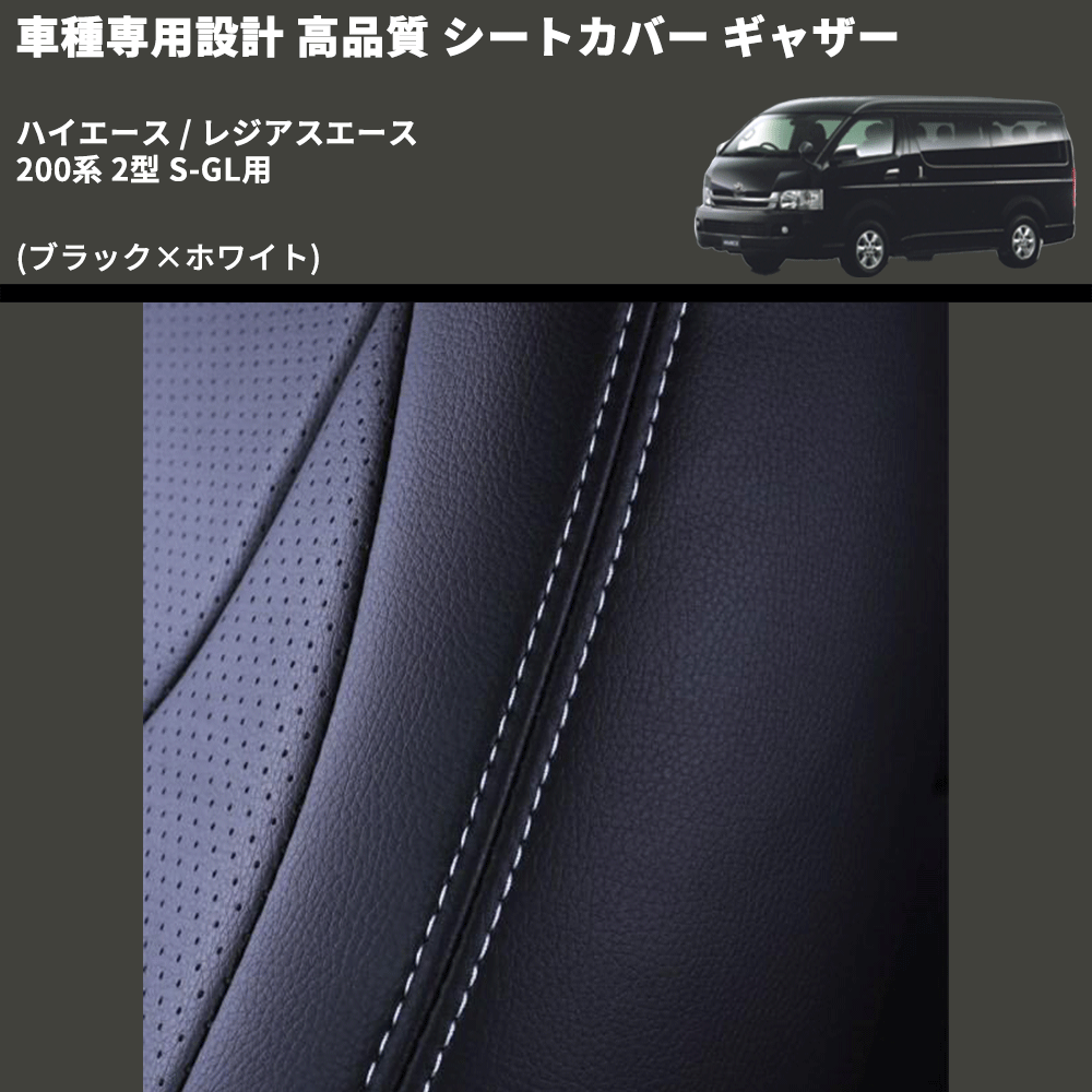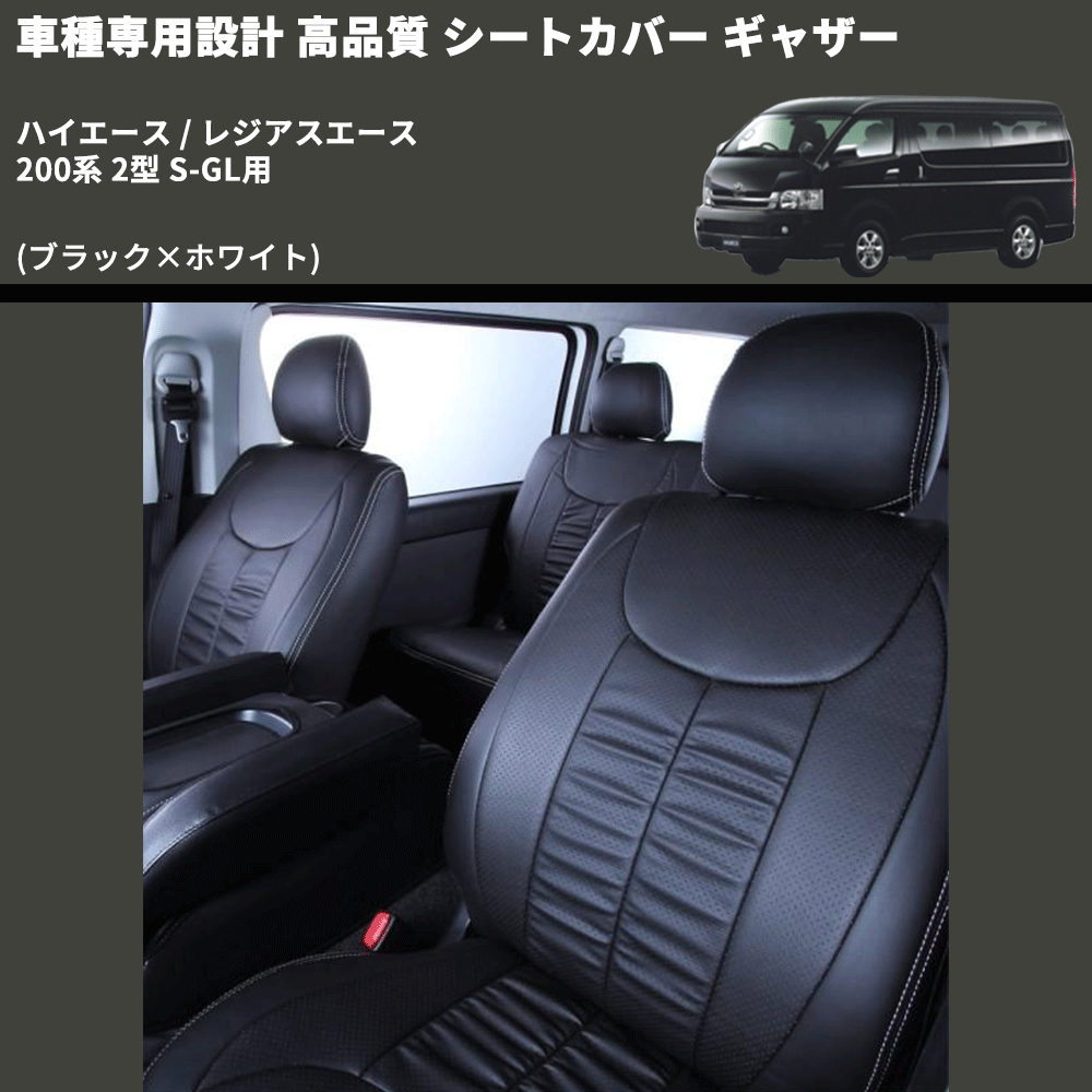 (ブラック×ホワイト) シートカバー ギャザー ハイエース / レジアスエース 200系 2型 S-GL用 FEGGARI HSC02GW-002