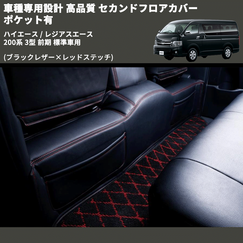 (ブラックレザー×レッドステッチ) セカンドフロアカバー ポケット有 ハイエース / レジアスエース 200系 3型 前期 標準車用 FEGGARI LH071BR-003