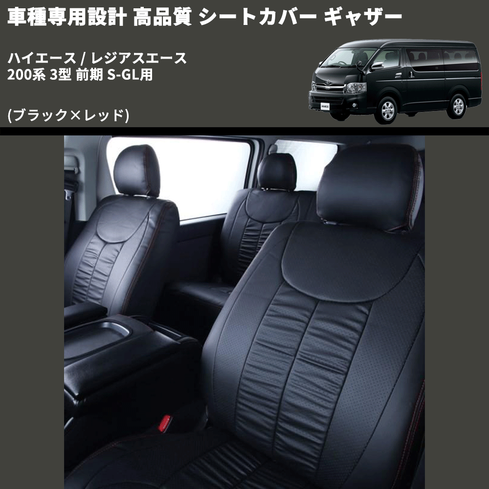 (ブラック×レッド) シートカバー ギャザー ハイエース / レジアスエース 200系 3型 前期 S-GL用 FEGGARI HSC02GR-003