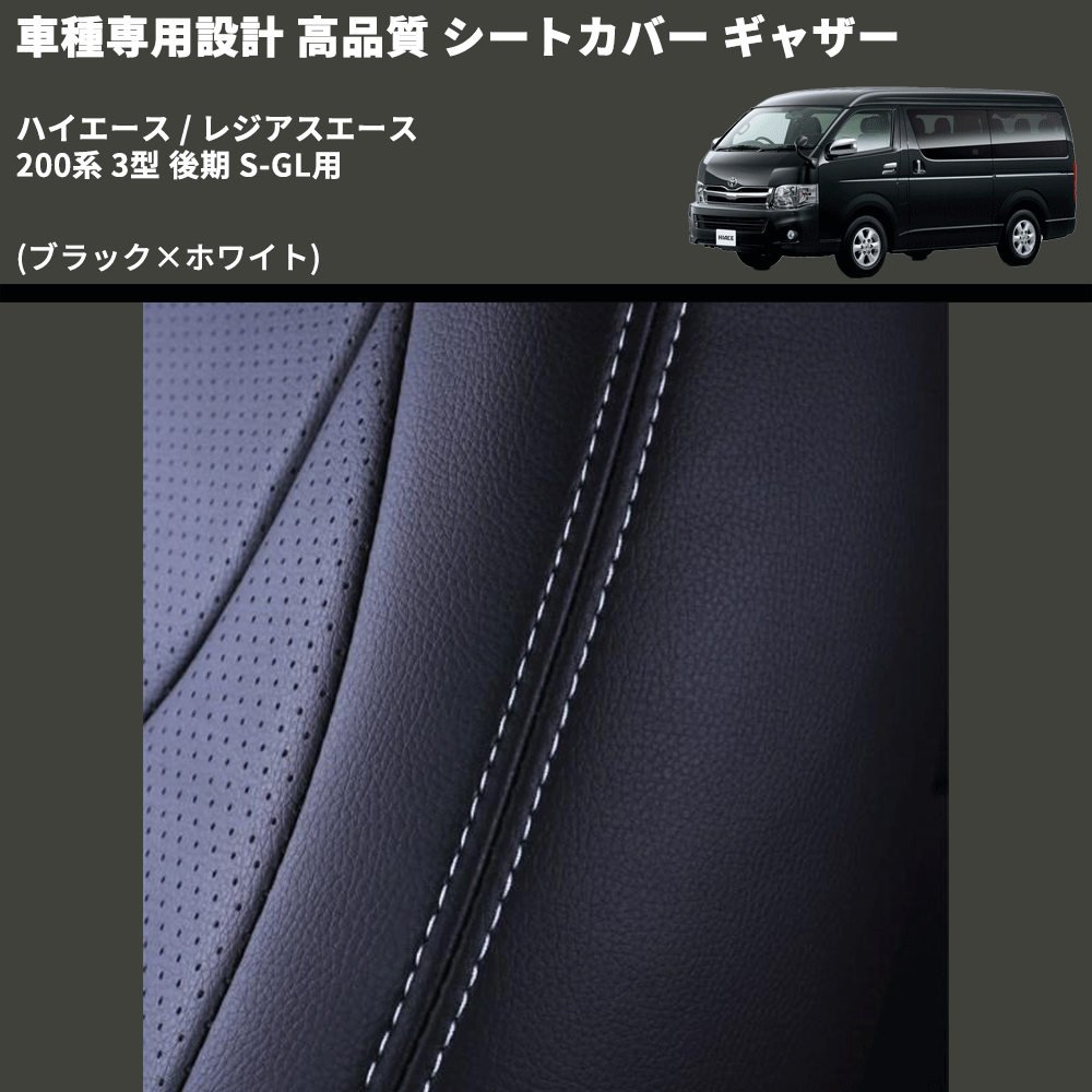 (ブラック×ホワイト) シートカバー ギャザー ハイエース / レジアスエース 200系 3型 後期 S-GL用 FEGGARI HSC02GW-004