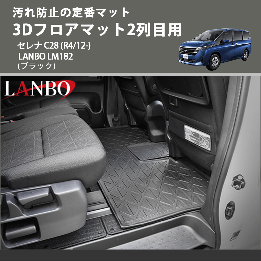 汚れ防止の定番マット (ブラック) 3Dフロアマット2列目用 セレナ C28 (R4/12-) LANBO LM182