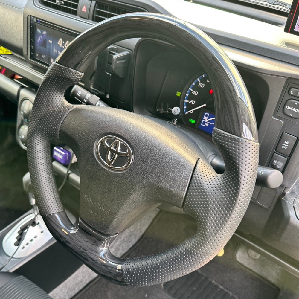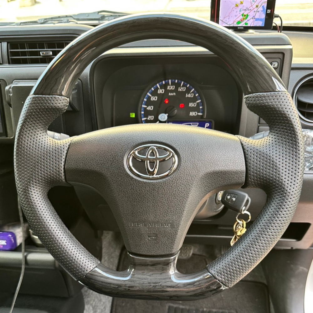 木目調(またはカーボン調等)とレザーのコンビステアリングでコックピットを一新!