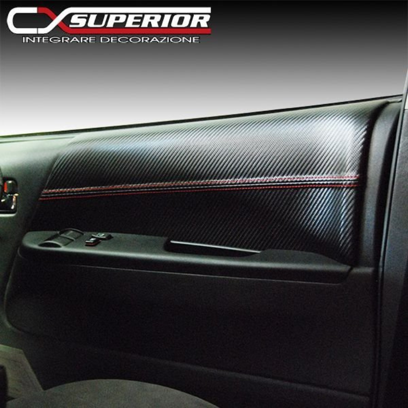 受注生産3week (カーボンルック×レッドステッチ) ドアレザーパネル ハイエース 200系 H16/8- 1-7現行型 ワイド可 フロントドアセット SUPERIOR 車 カスタム