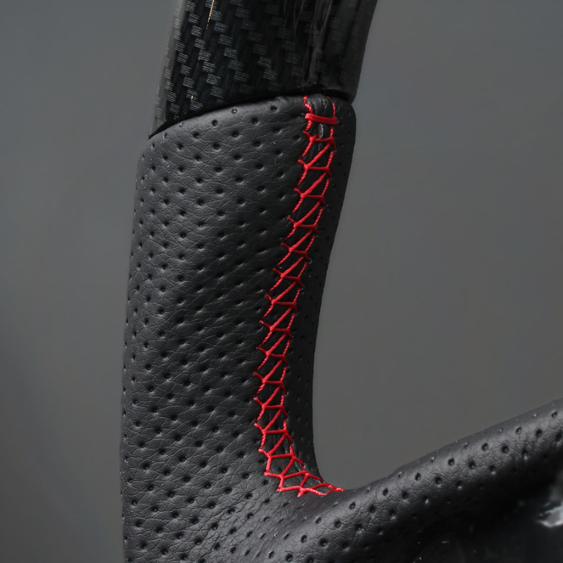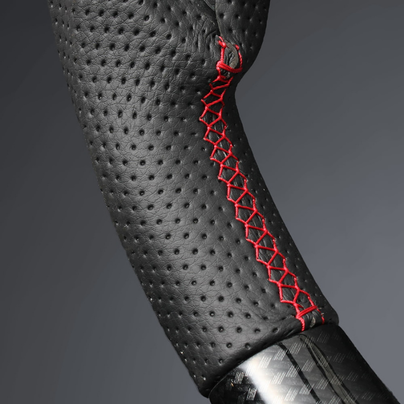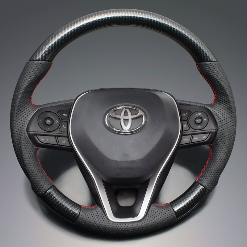 高品質の証ユーロステッチ採用 (カーボン調xレッドステッチ) 純正交換ガングリップステアリング カローラスポーツ/ツーリング 210系 H30/6- LS187
