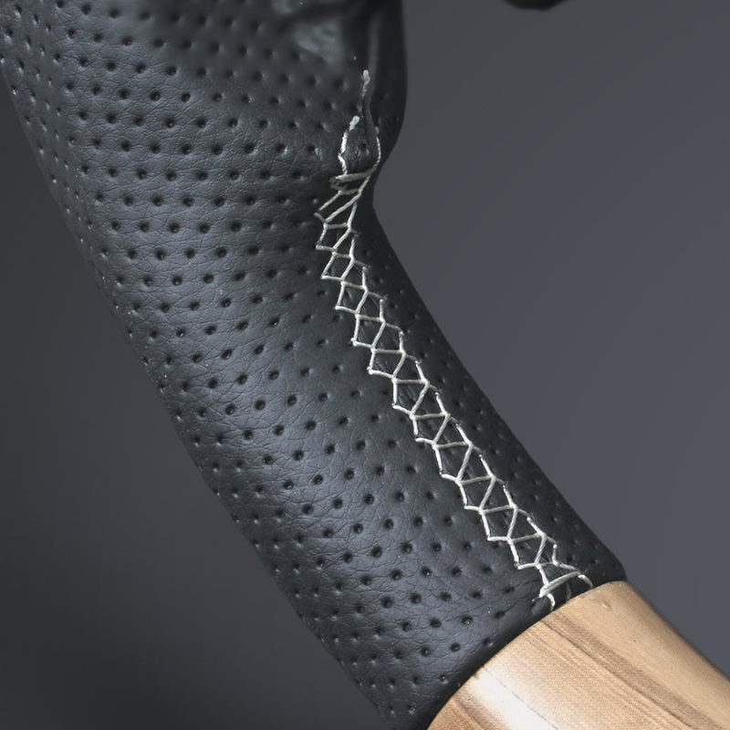 高品位PVCレザーを使用し、通気性を考慮したパンチング加工を施したグリップ部分はスポーツタイプ(ガングリップタイプ)で快適な操作性を実現。
