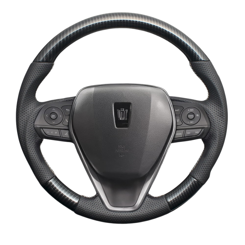 高品質の証ユーロステッチ採用 (カーボン調xシルバーステッチ) 純正交換ガングリップステアリング クラウン 220系 H30/-R4/7 LS203