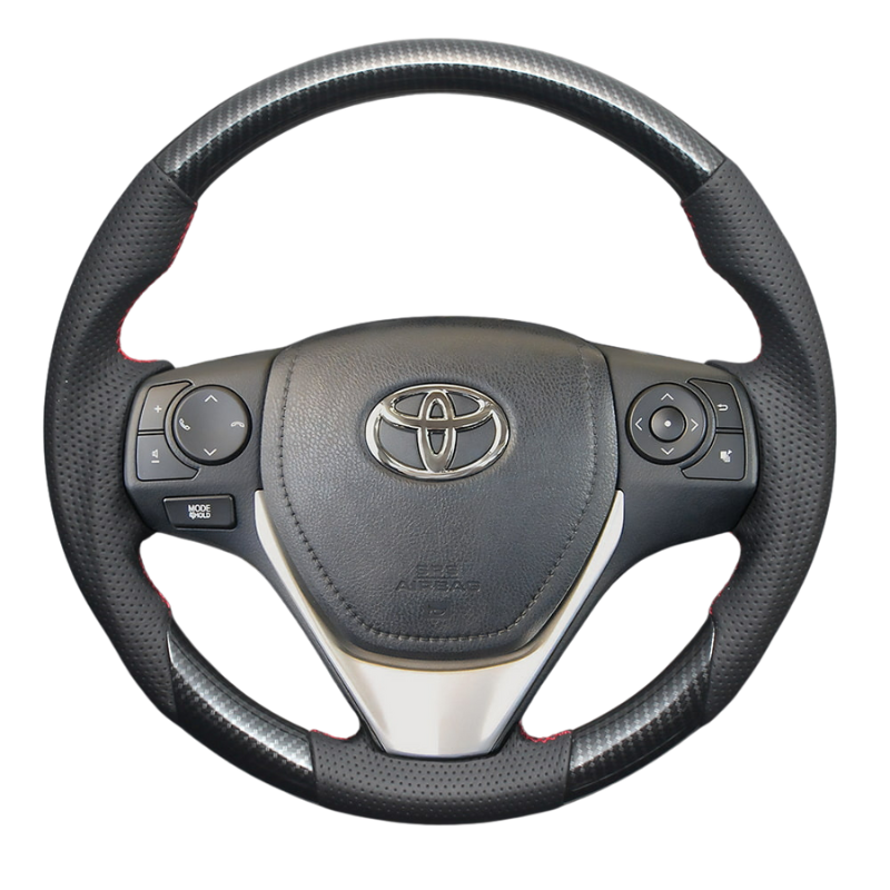 高品質の証ユーロステッチ採用 (カーボン調xレッドステッチ) 純正交換ガングリップステアリング オーリス 180系 H24-H30/3 LS194