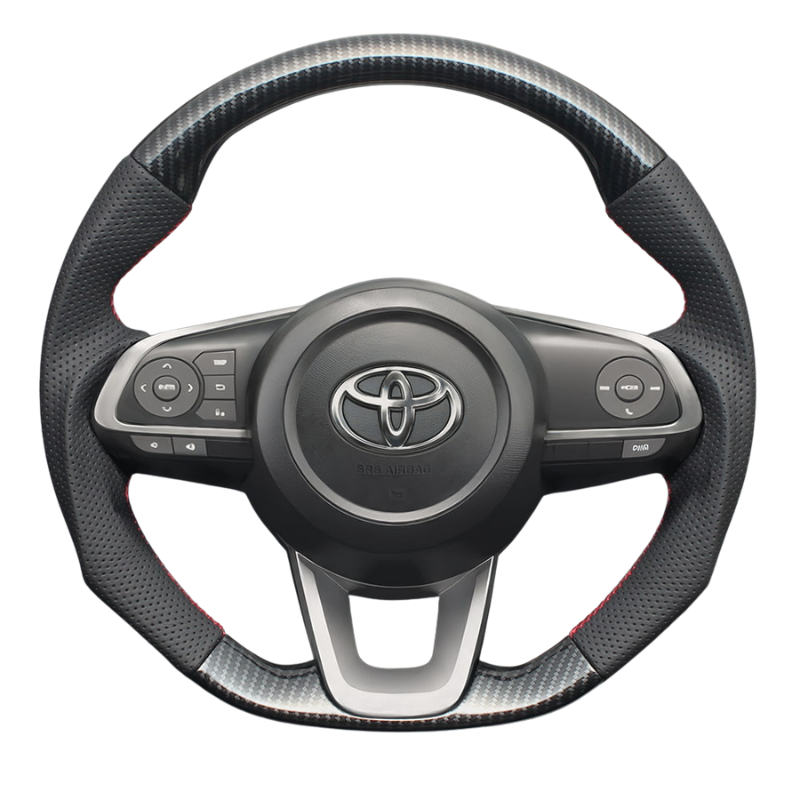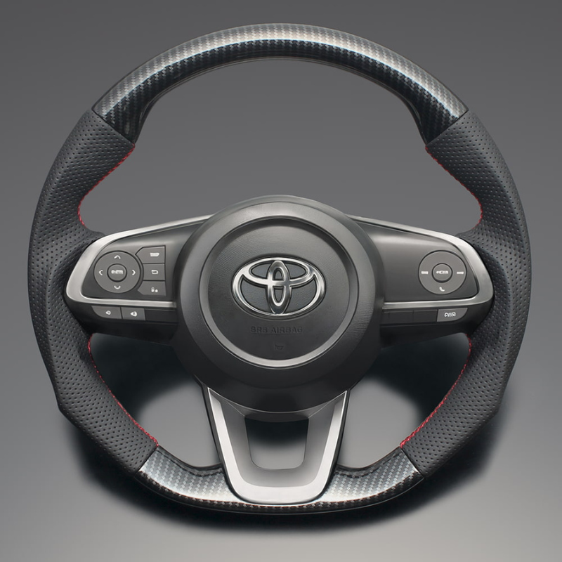 高品質の証ユーロステッチ採用 (カーボン調xレッドステッチ) 純正交換ガングリップステアリング RAIZE 200系 R1/11- LS199 ロッキー取付可能